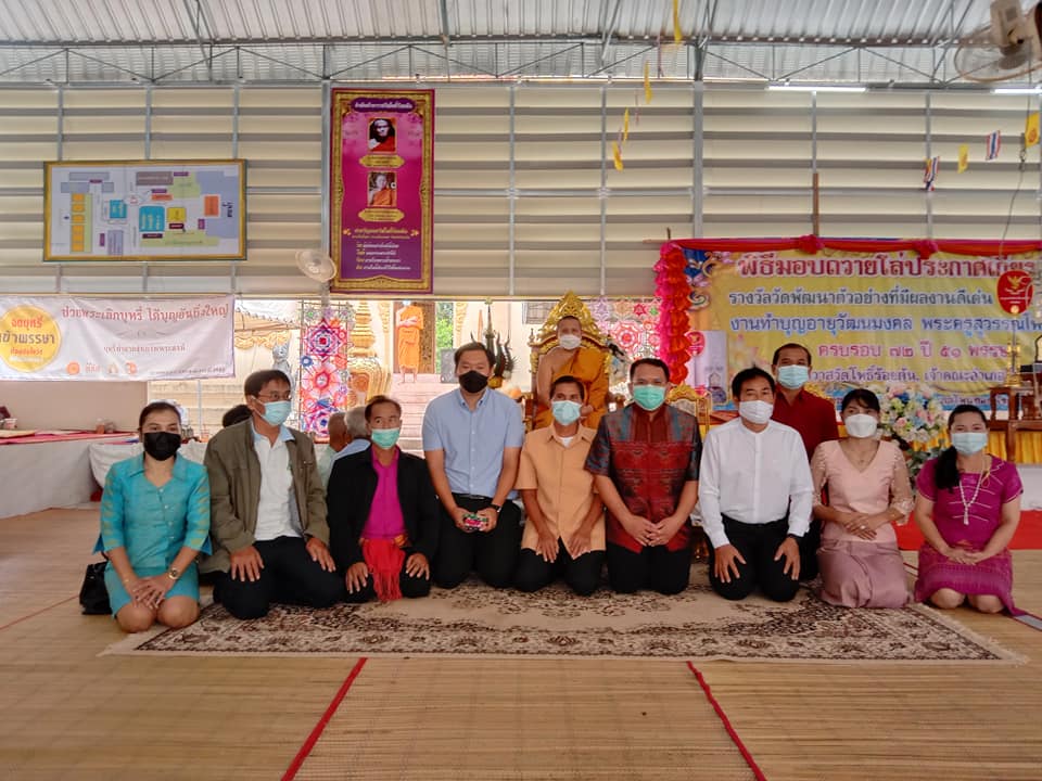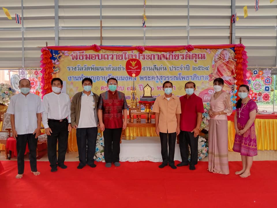 กิจกรรมวันธรรมสวนะสามัคคีตำบลโพธิ์ทอง ทอดถวายเทียนพรรษา ฟังธรรมเทศนา พิธีมอบถวายโล่ประกาศเกียรติคุณรางวัลวัดพัฒนาตัวอย่างผลงานดีเด่น ประจำปี 2564