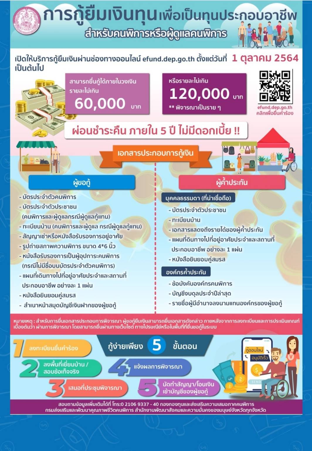 การกู้ยืมเงินเพื่อเป็นทุนประกอบอาชีพ สำหรับคนพิการหรือผู้ดูแลคนพิการ